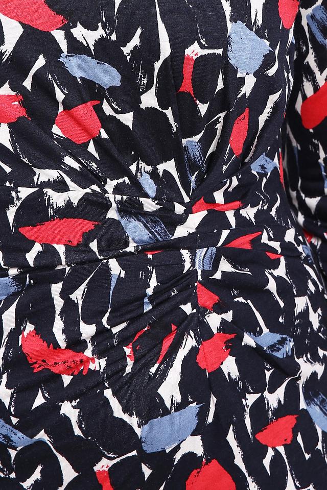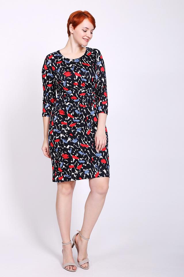 Платье изготовлено из 100% вискозы, что обеспечивает комфорт и приятные ощущения при носке. Вискоза – это натуральный материал, который хорошо дышит и обладает мягкой текстурой. Сбоку платья есть небольшая сборка на талии, которая создает дополнительный акцент на фигуре.