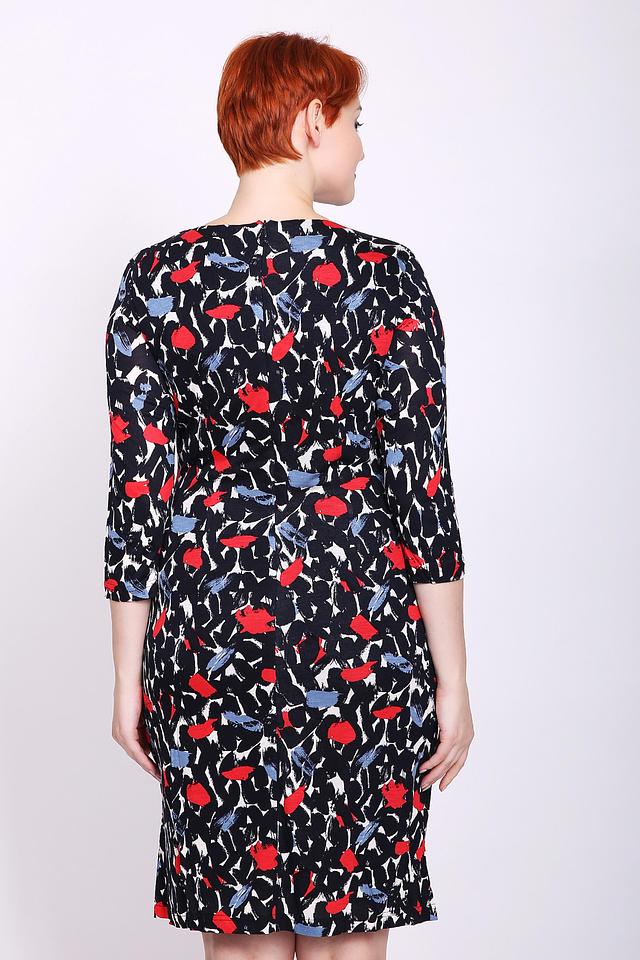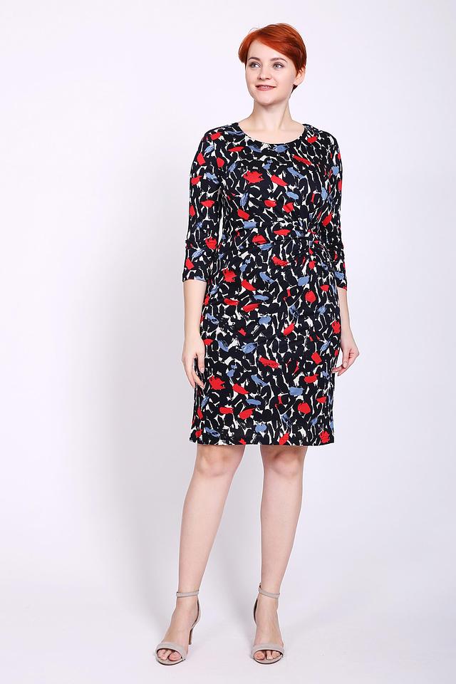 Приталенный силуэт платья выгодно подчеркивает фигуру, а длина до колена делает его универсальным для различных случаев. Рукава длиной 3/4 добавляют образу изысканности. Скругленный вырез горловины.