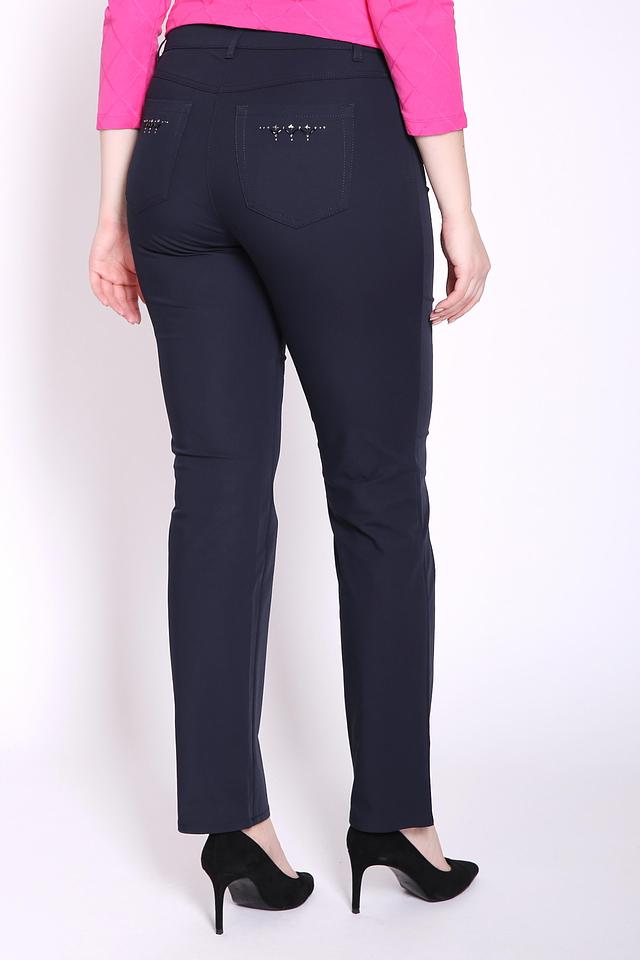 Брюки имеют прямой крой, который обеспечивает комфортную посадку по фигуре. Материал – сочетание полиамида, хлопка и эластана – приятен к телу, хорошо держит форму и обеспечивает свободу движений. Декоративные стразы на задних карманах добавляют брюкам изысканности и индивидуальности.