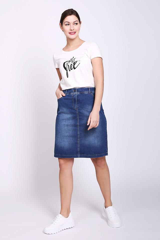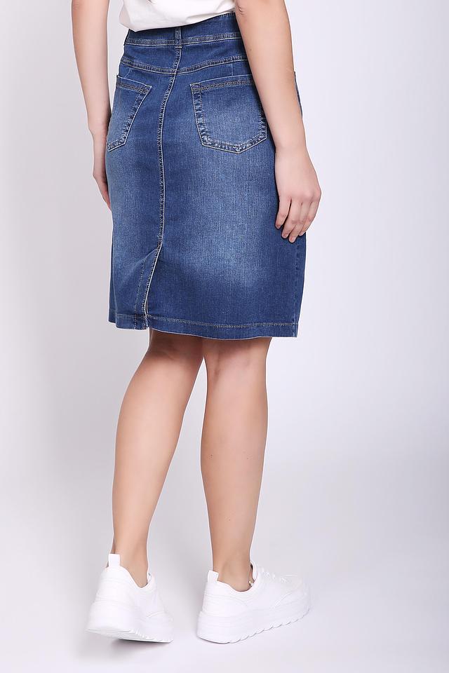 Юбка имеет прямую форму и длину до колена. Изготовлена из высококачественного хлопка с добавлением эластомера и эластана, что обеспечивает приятные тактильные ощущения и хорошую посадку по фигуре. Ткань достаточно плотная, но при этом позволяет коже дышать.