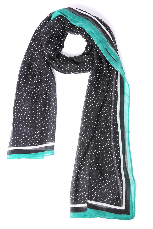 Шарф Gerry Weber чёрного цвета с белым горошком – стильный и лёгкий аксессуар. Изделие выполнено из 100% полиэстера и дополнено яркой бирюзовой отделкой по краям. Состав: полиэстер 100%