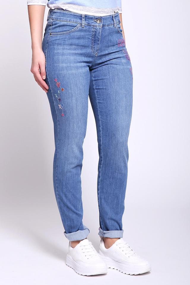 Женские джинсы Gerry Weber голубого цвета с цветочной вышивкой — стильное и комфортное решение для повседневного образа. Модель выполнена из качественного хлопка с добавлением полиэстера и эластана, обеспечивающих удобную посадку и долговечность. Состав: хлопок 69%, полиэстер 27%, эластан 4%