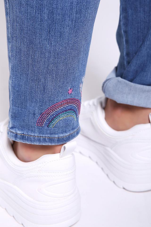 Представляем вашему вниманию стильные джинсы от бренда Gerry Weber. Эта модель выполнена в классическом голубом цвете и украшена изысканной цветочной вышивкой, придающей образу женственность и оригинальность.