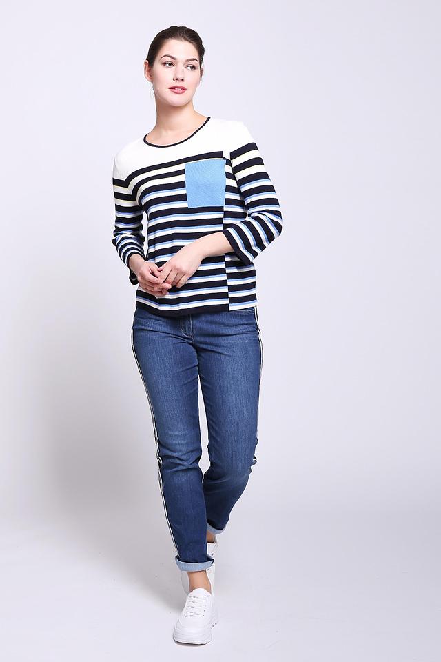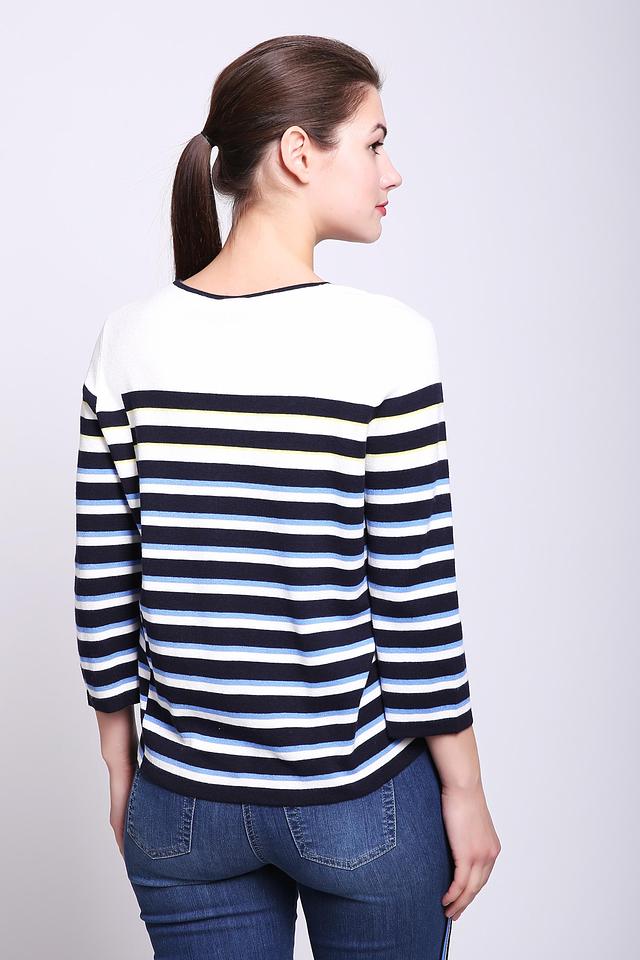 Этот стильный пуловер от Gerry Weber станет отличным дополнением к вашему гардеробу. Модель выполнена в классической полосатой расцветке, сочетающей в себе белый, синий и тёмно-синий цвета.