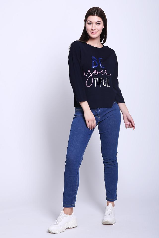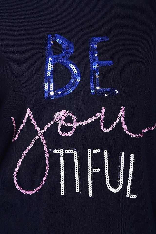 Этот стильный пуловер от Gerry Weber станет отличным дополнением к вашему гардеробу. Пуловер выполнен в темно-синем цвете и украшен эффектной надписью "BE YOU-TIFUL", выполненной с использованием сверкающих пайеток.