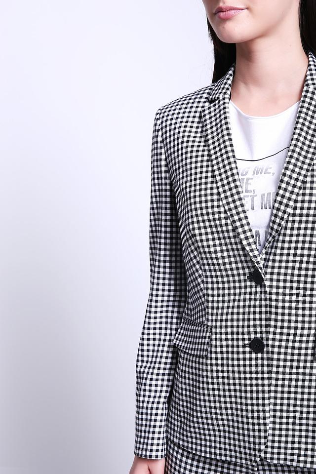 Этот жакет от Gerry Weber станет прекрасным дополнением к вашему гардеробу. Выполненный в классическую чёрно-белую клетку, он придает образу строгость и элегантность.