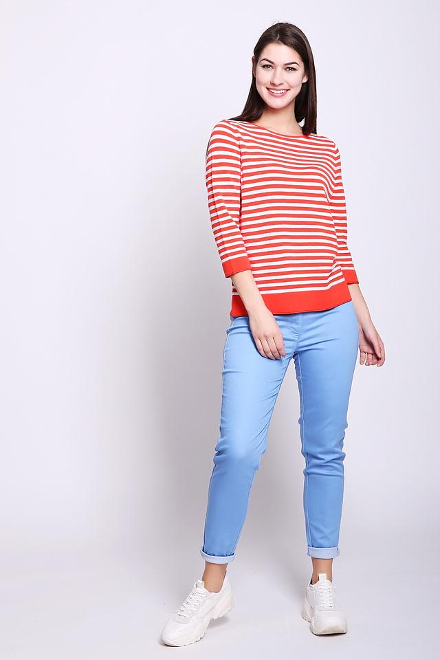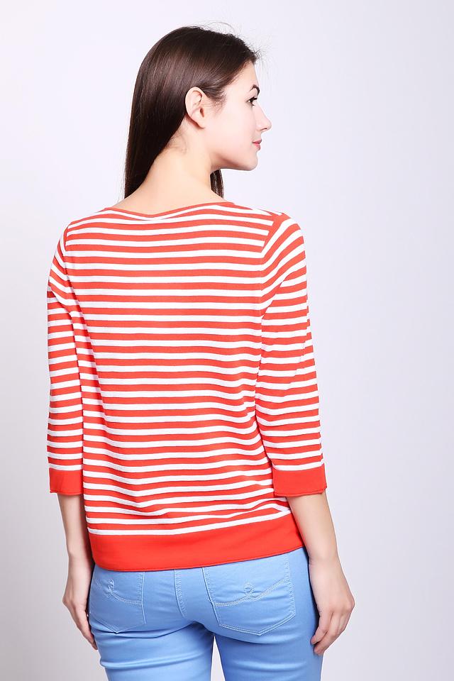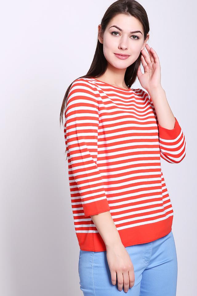 Этот женский пуловер от Gerry Weber выполнен в классическом стиле с ярким дизайном в красную и белую полоску. Модель имеет удобный круглый вырез горловины и рукава длиной 3/4, что делает его универсальным для различных сезонов.