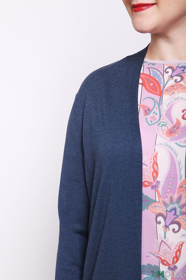 - Дизайн: Жакет имеет прямой крой, длинные рукава и открытый перед без застежки, что придает ему легкость и непринужденность. Отсутствие воротника делает модель универсальной для сочетания с разными типами вырезов.