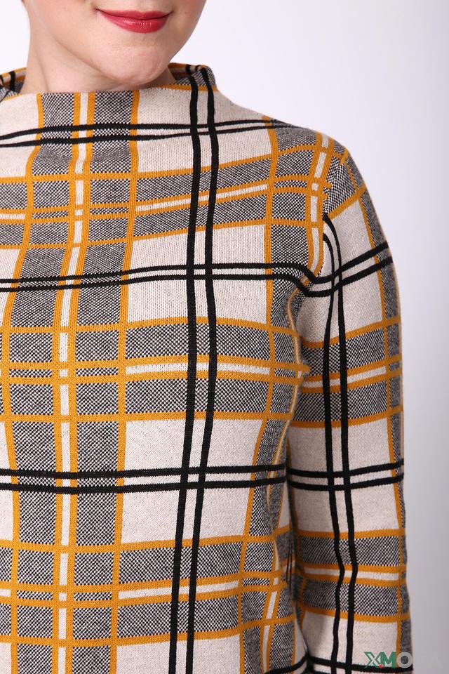 Этот стильный пуловер от Gerry Weber станет прекрасным дополнением к вашему гардеробу. Пуловер выполнен в приятной горчичной цветовой гамме с классическим клетчатым узором, который придает ему элегантный вид.