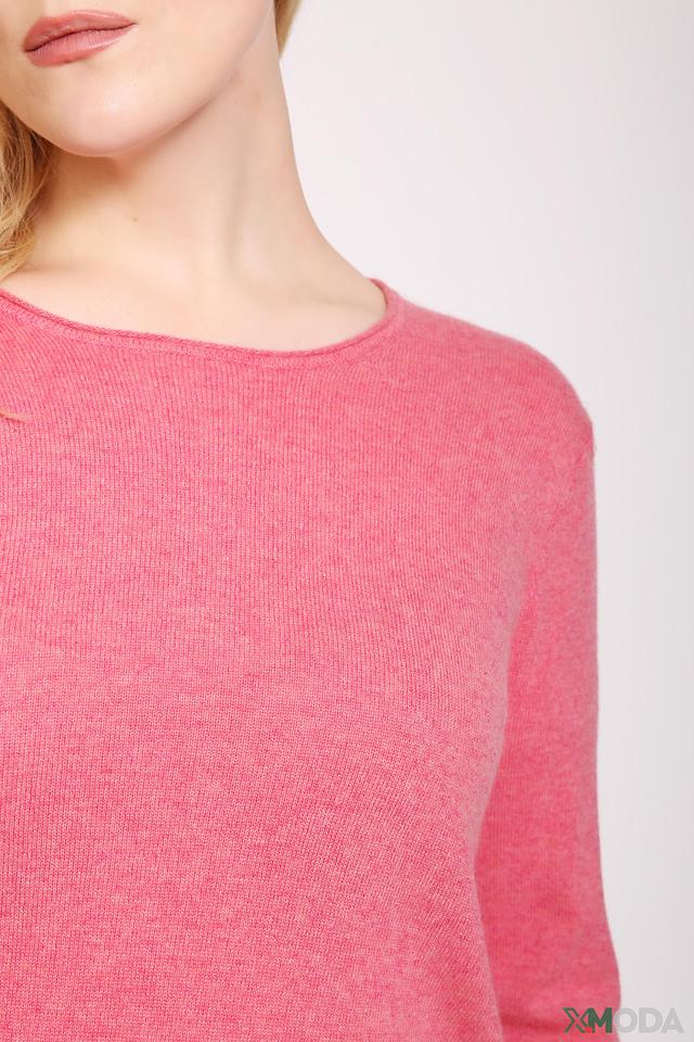 Цвет пуловера – нежный розовый, с лёгкой меланжированной текстурой, что придает ему особый шарм. Он идеально подойдет для создания как повседневных, так и более элегантных образов.