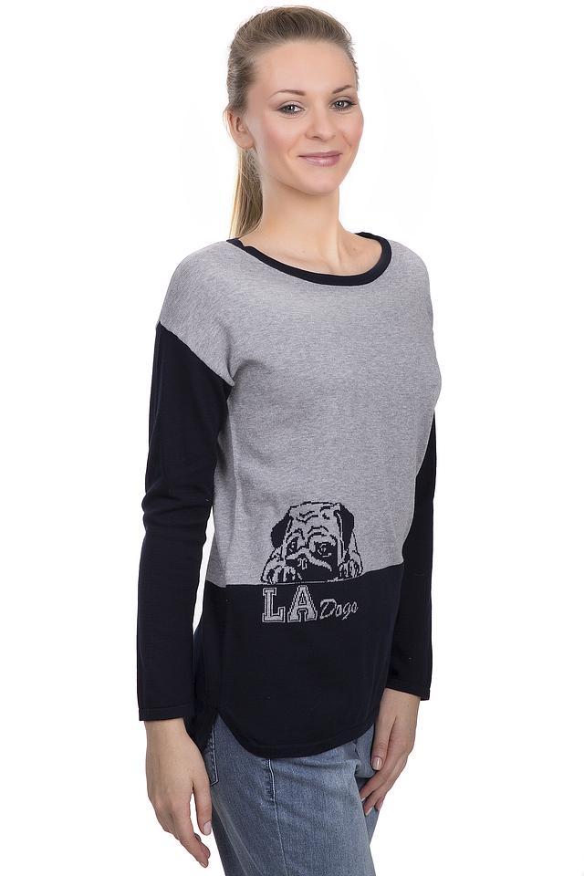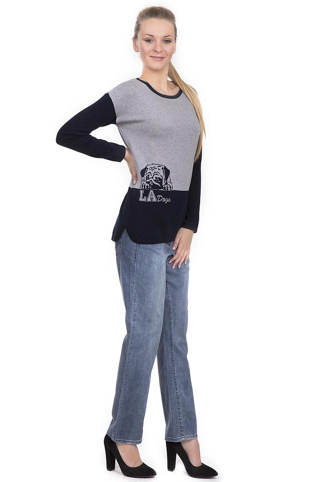 Жакет Gerry Weber серого и тёмно-синего цвета с оригинальным принтом в виде изображения собаки породы дог. Модель выполнена из мягкого хлопка и имеет удобный свободный крой. Состав: хлопок 100%