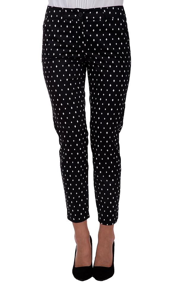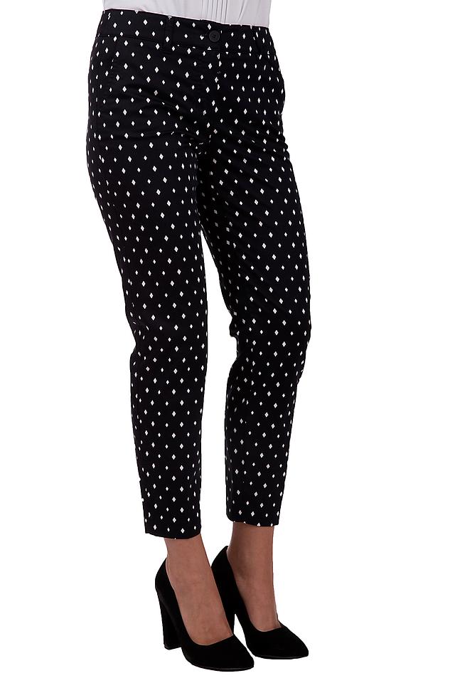 Чёрные брюки Gerry Weber с оригинальным принтом в виде ромбов станут стильным дополнением к вашему гардеробу. Модель выполнена из качественного хлопка с добавлением эластана для комфорта и свободы движений. Состав: хлопок 97%, эластан 3%