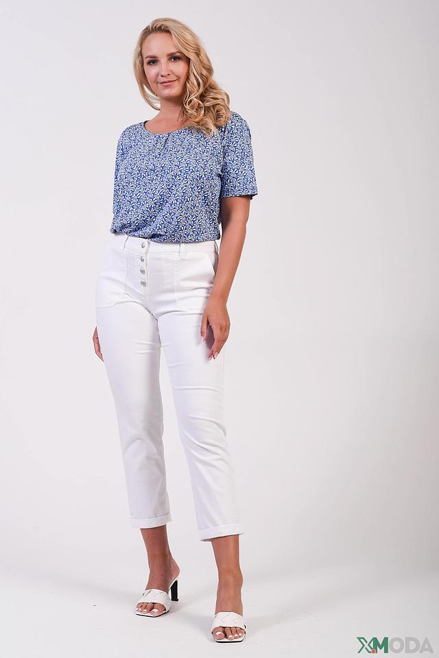 Брюки имеют прямой крой и высокую посадку, что визуально удлиняет ноги и подчеркивает талию. Материал – хлопок с добавлением эластомультиэстера и эластана, обеспечивающий комфорт в носке и хорошую посадку по фигуре. Наличие функциональных карманов добавляет практичности.