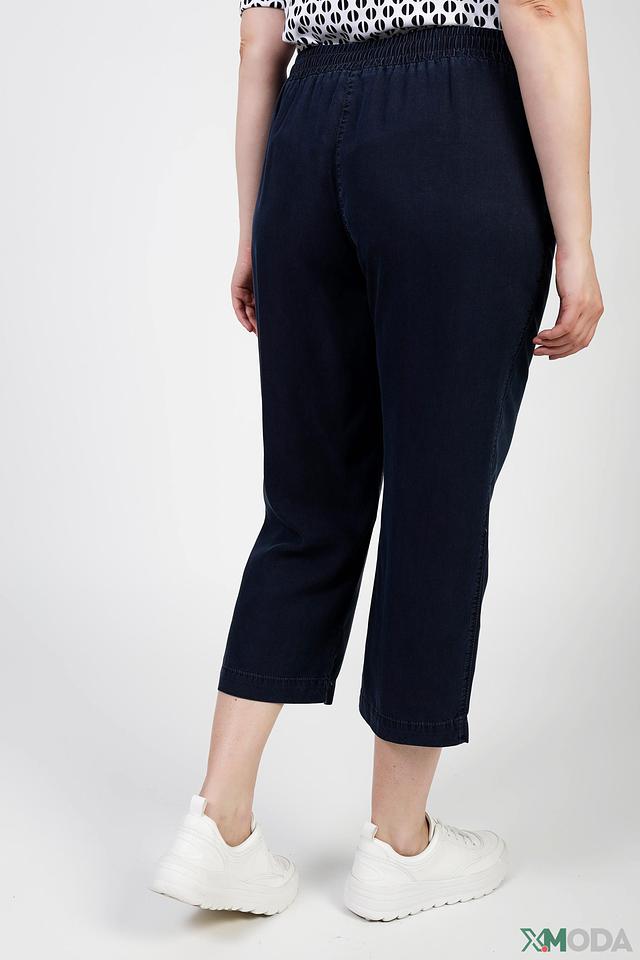 Классический темно-синий цвет делает эти бриджи универсальными и легко сочетаемыми с различными элементами одежды. Эластичный пояс с кулиской обеспечивает идеальную посадку по фигуре, а боковые карманы добавляют практичности.