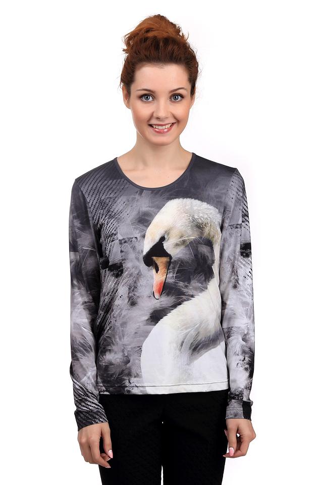 Основной цвет лонгслива – серый, но его украшает эффектный принт с изображением белого лебедя, который придает изделию оригинальность и изысканность. Принт выполнен в реалистичной манере, что делает лонгслив особенно привлекательным.