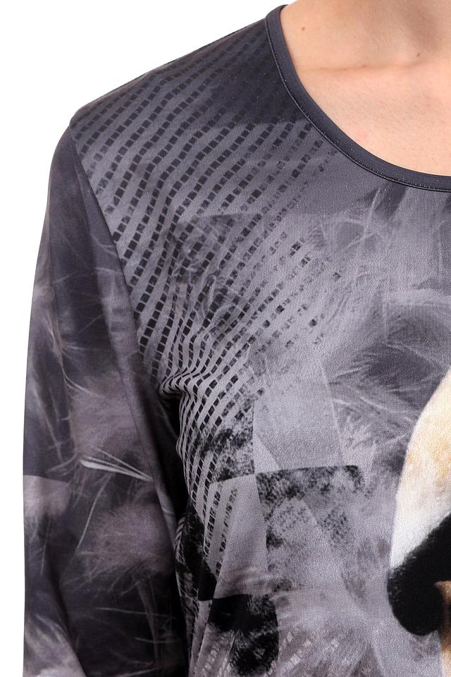 Женский лонгслив Gerry Weber серого цвета с ярким принтом белого лебедя. Изготовлен из мягкого и эластичного полиэстера с добавлением эластана, обеспечивающего комфортную посадку. Состав: полиэстер 92%, эластан 8%