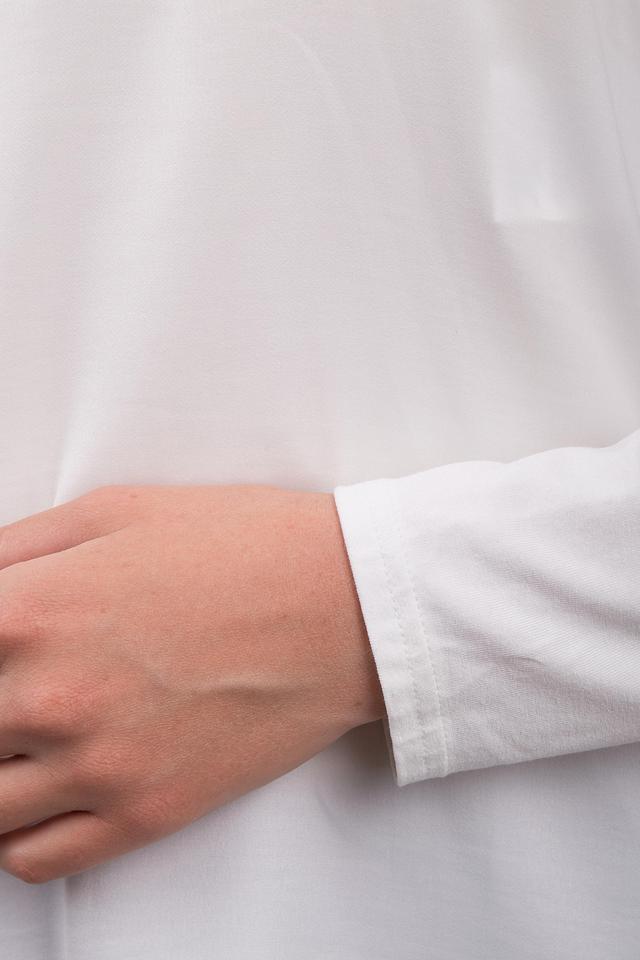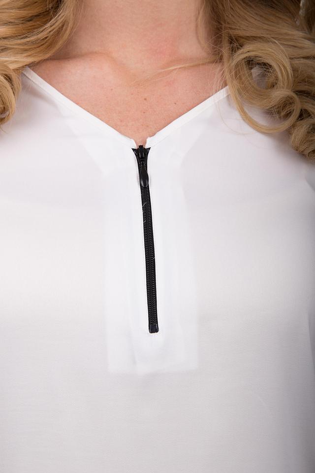 Особенностью данной модели является черная молния, расположенная на горловине, которая добавляет блузе современный и динамичный вид. Блуза имеет прямой крой, который обеспечивает свободу движений и комфортную посадку по фигуре.