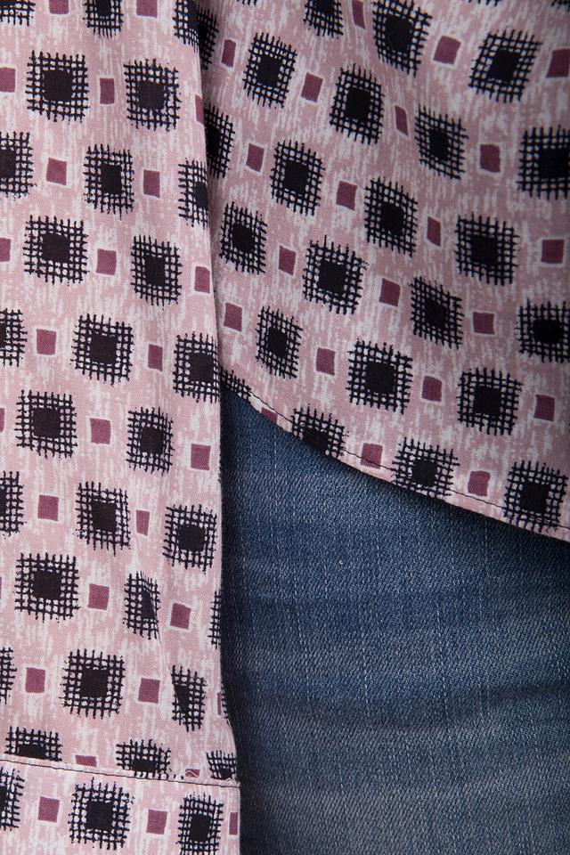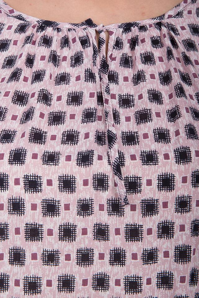 Блуза Gerry Weber нежно-розового цвета с геометрическим принтом станет отличным дополнением к вашему гардеробу. Модель с длинными рукавами и округлым вырезом, завязками на горловине, выполнена из 100% вискозы. Состав: вискоза 100%