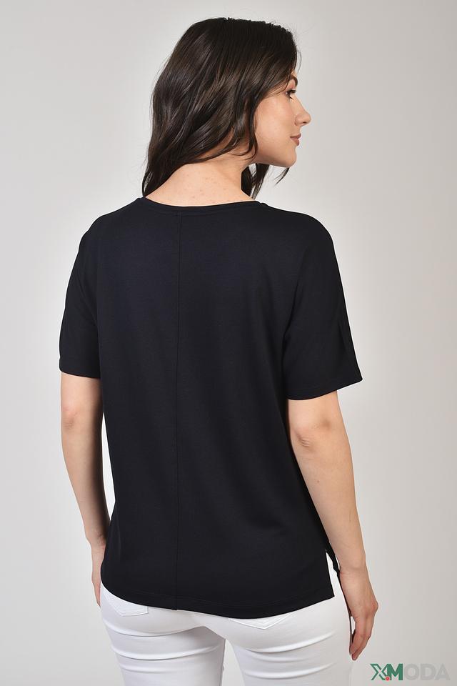 Модель имеет прямой, слегка свободный крой, который обеспечивает комфортную посадку по фигуре. Короткие рукава и круглый вырез горловины делают футболку универсальной и подходящей для различных образов.