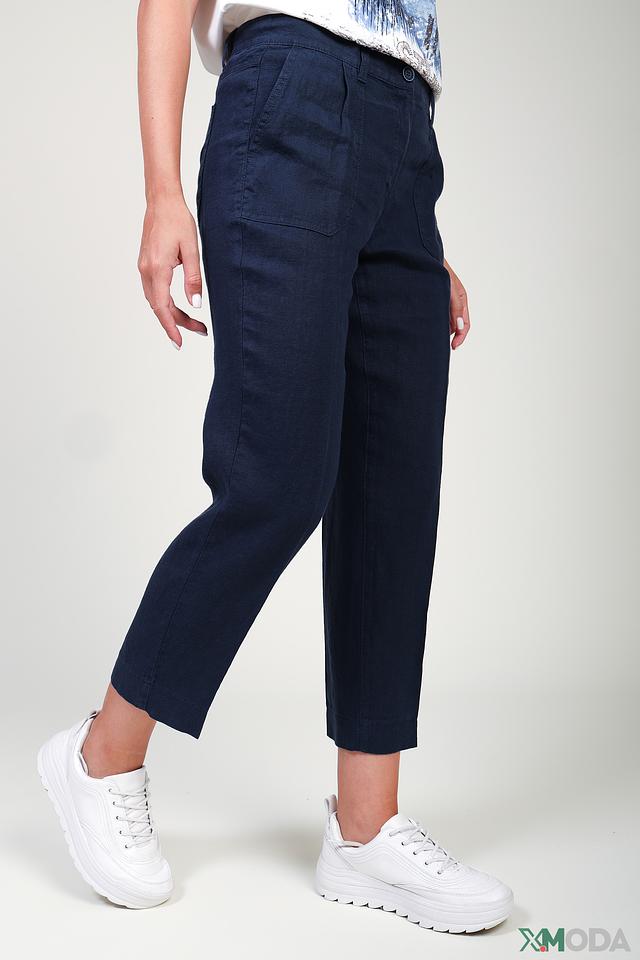 Брюки имеют стандартную посадку на талии и застегиваются на молнию и пуговицу. Они идеально сочетаются с легкими блузками, топами или футболками, создавая непринужденный и стильный образ. Льняная ткань приятна к телу и не требует особого ухода.