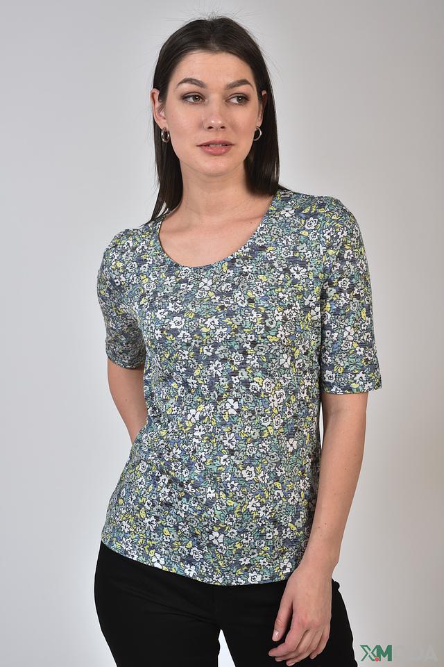 Блуза Gerry Weber синего цвета с нежным цветочным принтом станет отличным дополнением к вашему гардеробу. Модель выполнена из лёгкой и приятной к телу ткани, идеально подходит для создания комфортных и стильных образов. Состав: полиэстер 65%, вискоза 35%