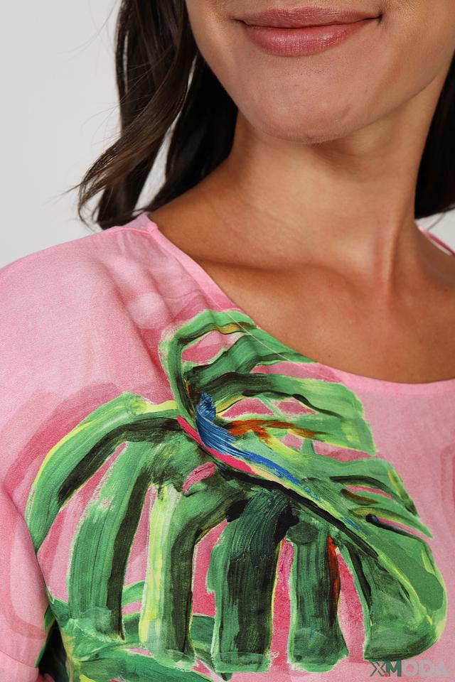 Розовая блуза Gerry Weber с ярким тропическим принтом станет стильным дополнением вашего гардероба. Модель свободного кроя из вискозы обеспечит комфорт и лёгкость в носке. Состав: вискоза 95%, эластан 5%