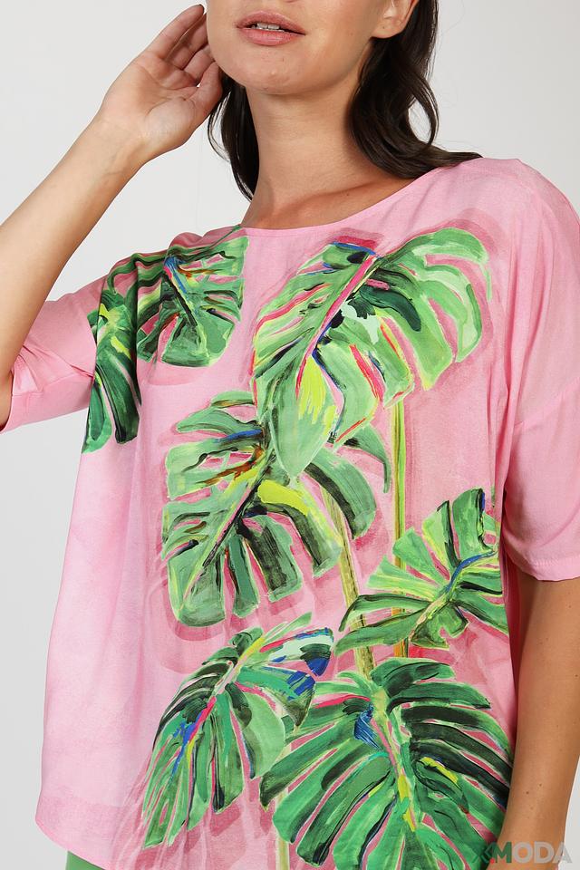 Эта блуза от Gerry Weber – идеальный выбор для создания непринужденного и яркого образа. Выполнена в нежном розовом цвете и украшена эффектным принтом с изображением тропических листьев.
