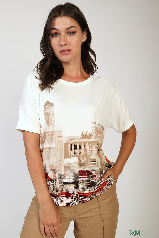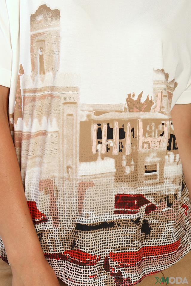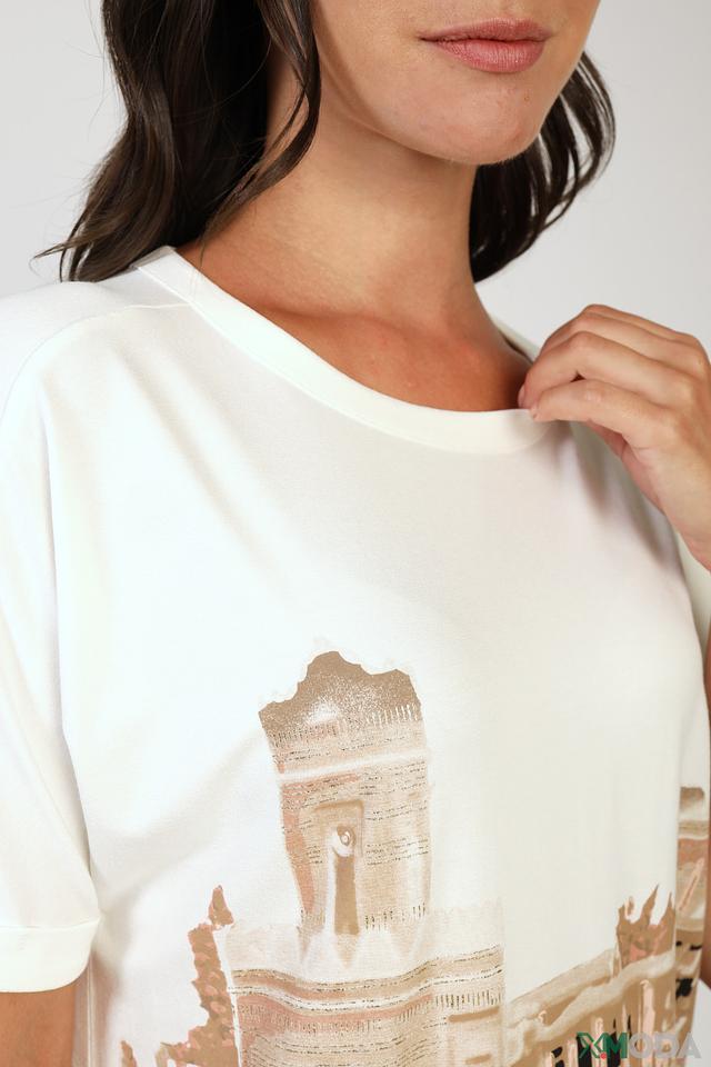 Эта футболка от Gerry Weber EDITION – идеальный выбор для создания непринужденного, но элегантного образа. Футболка выполнена в белом цвете и украшена оригинальным принтом с изображением городской архитектуры.