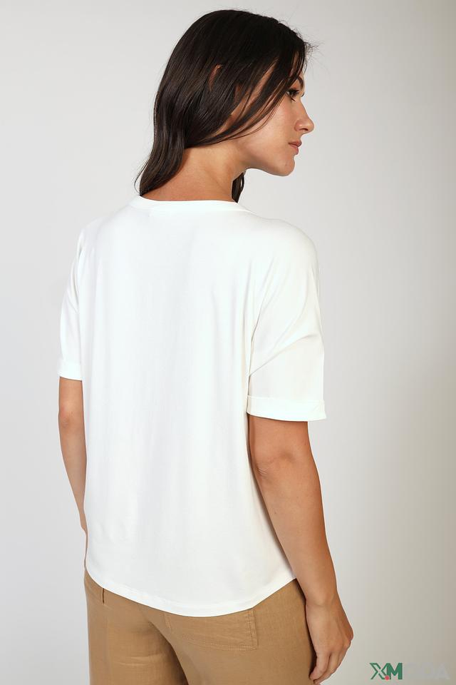 Футболка изготовлена из высококачественной вискозы (95%) с добавлением эластана (5%), что обеспечивает мягкость, приятные тактильные ощущения и хорошую посадку по фигуре. Этот материал хорошо дышит и позволяет коже чувствовать себя комфортно даже в жаркую погоду.