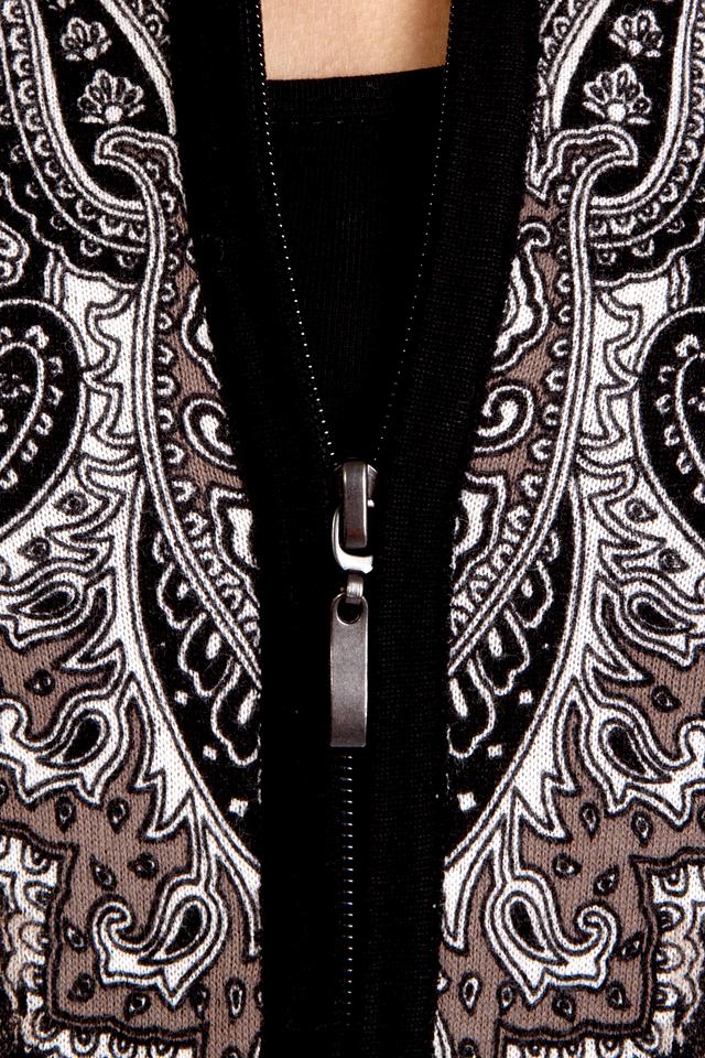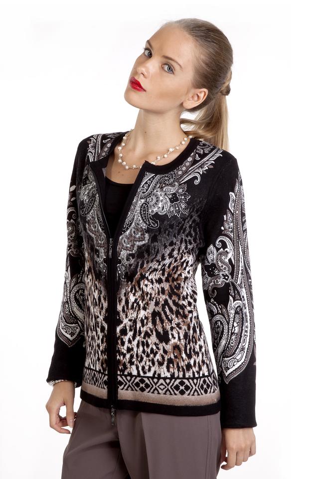Жакет Gerry Weber чёрного цвета с оригинальным принтом в стиле пейсли и леопарда станет ярким акцентом вашего образа. Модель застёгивается на молнию и идеально подходит для создания стильных повседневных луков. Состав: хлопок 100%