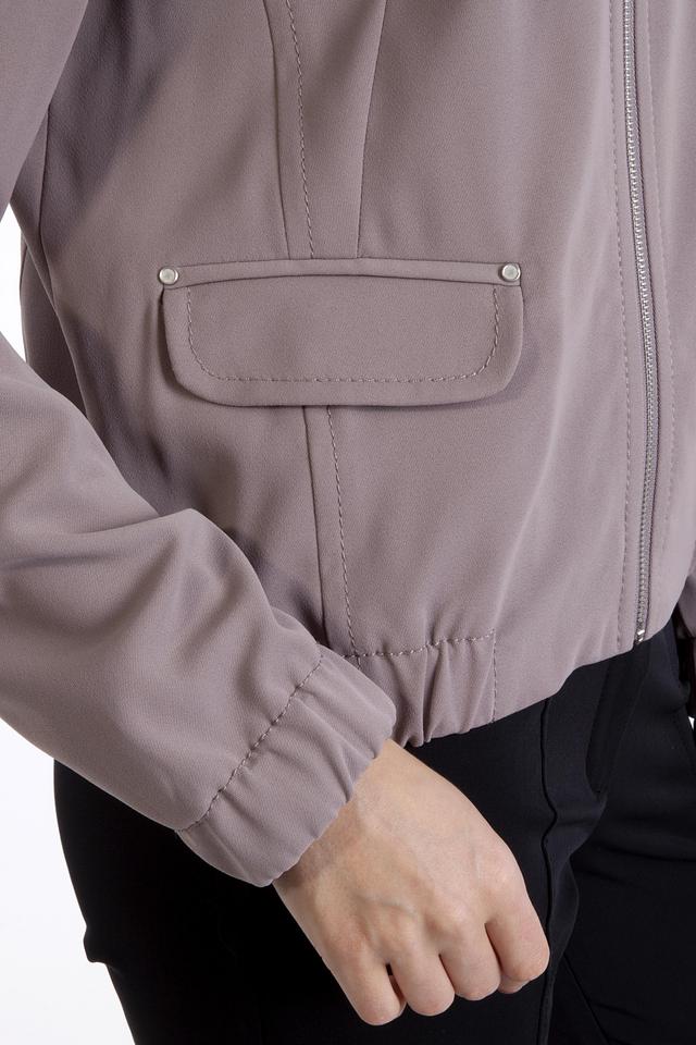 Жакет оснащен двумя боковыми карманами, которые добавят функциональности. Рукава длинные, с манжетами на резинке, что обеспечивает комфортную посадку. Воротник-стойка придает жакету современный вид.