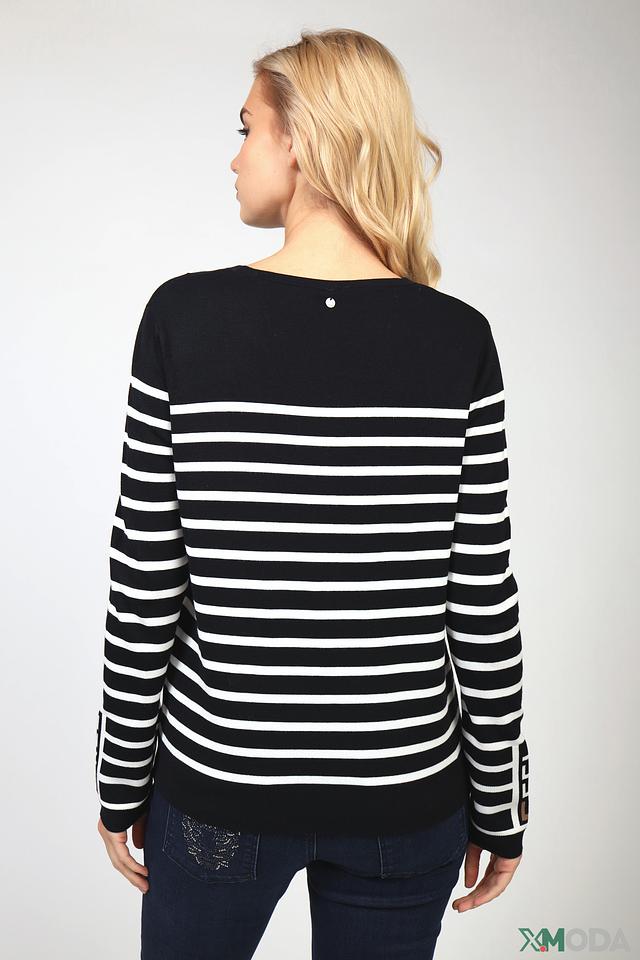 Этот стильный пуловер от Gerry Weber выполнен в классическом чёрно-белом сочетании полосок. Модель имеет прямой крой и круглый вырез горловины, что делает её универсальной и подходящей для различных образов.