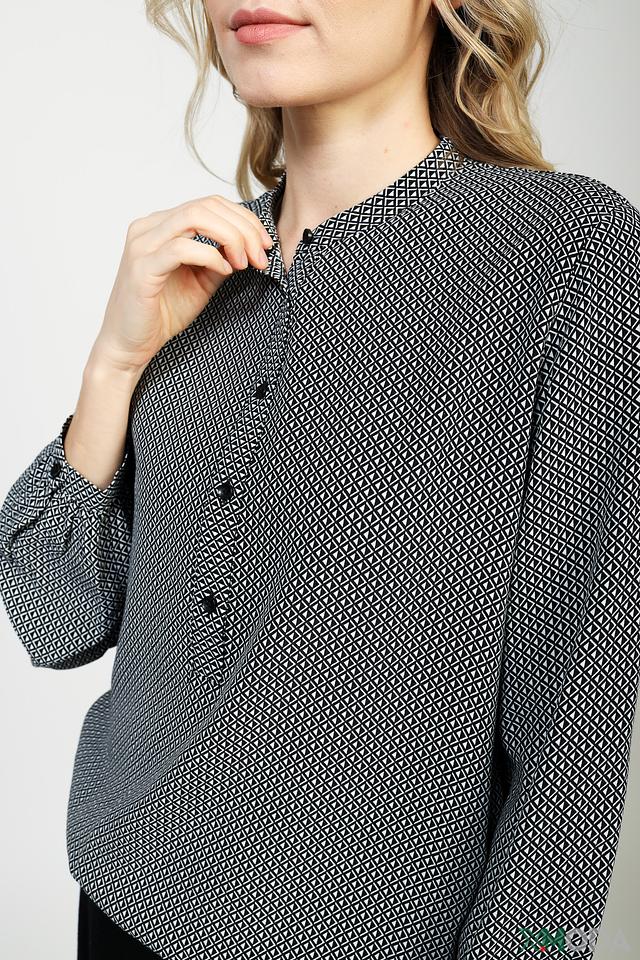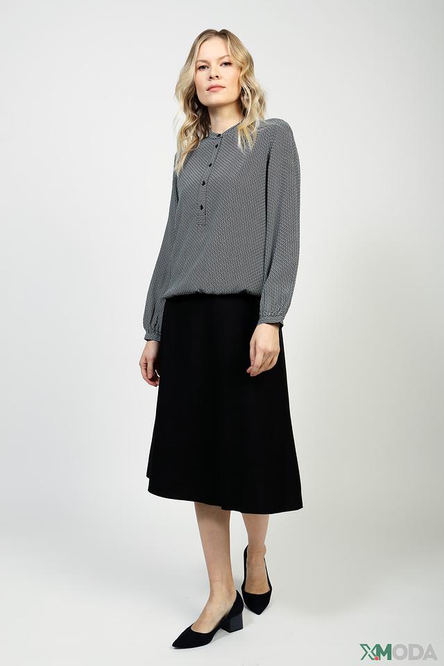 Блуза имеет длинные рукава с манжетами на пуговицах, что позволяет регулировать их длину и создавать различные образы. V-образный вырез горловины и застежка на пуговицы добавляют классические нотки в дизайн.