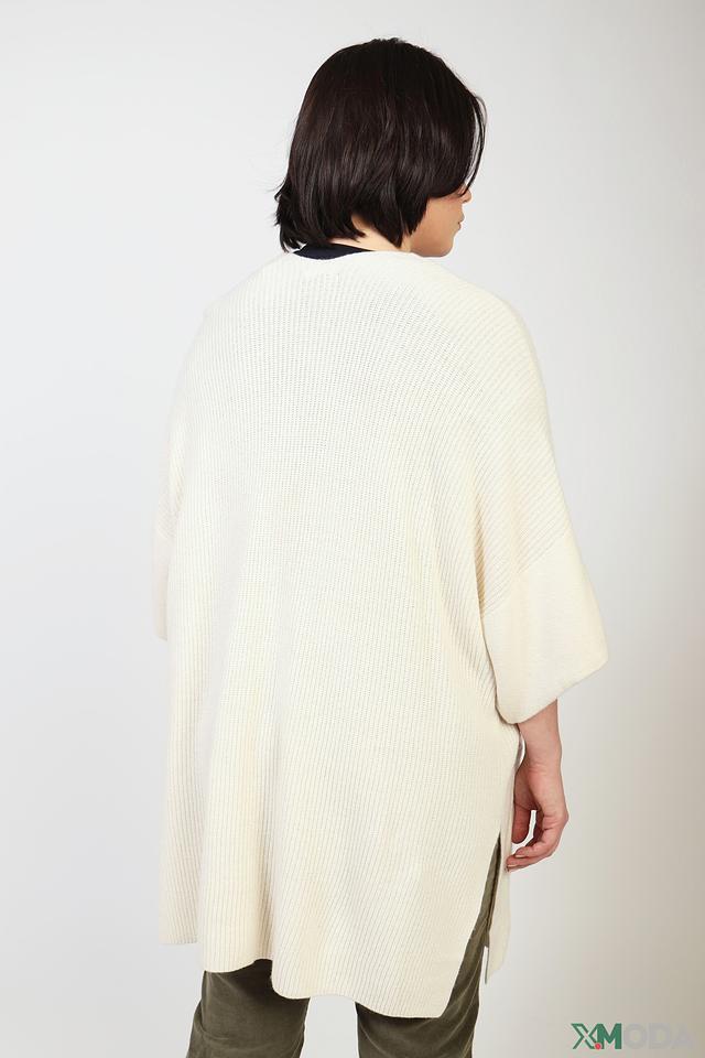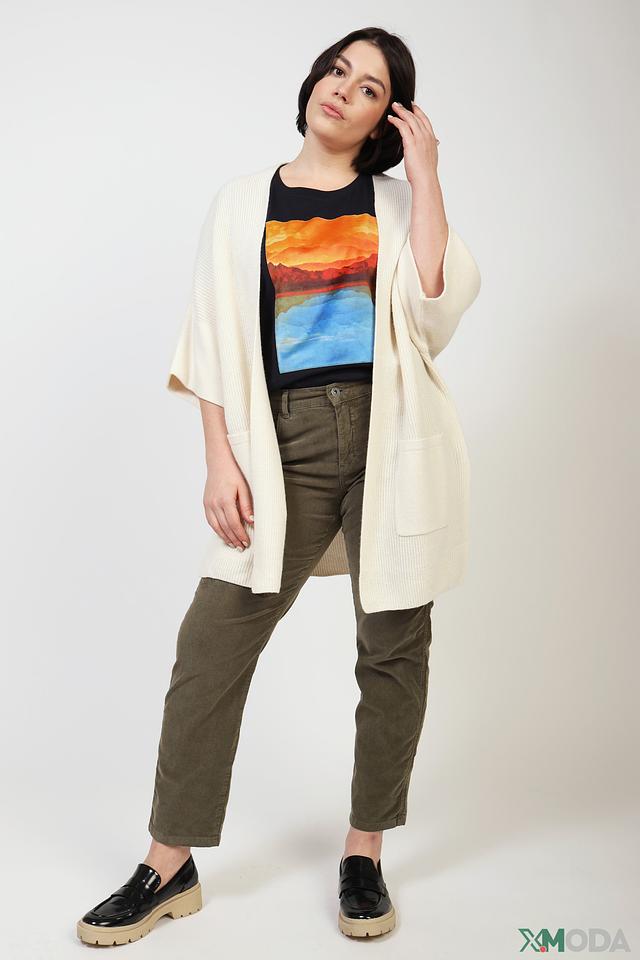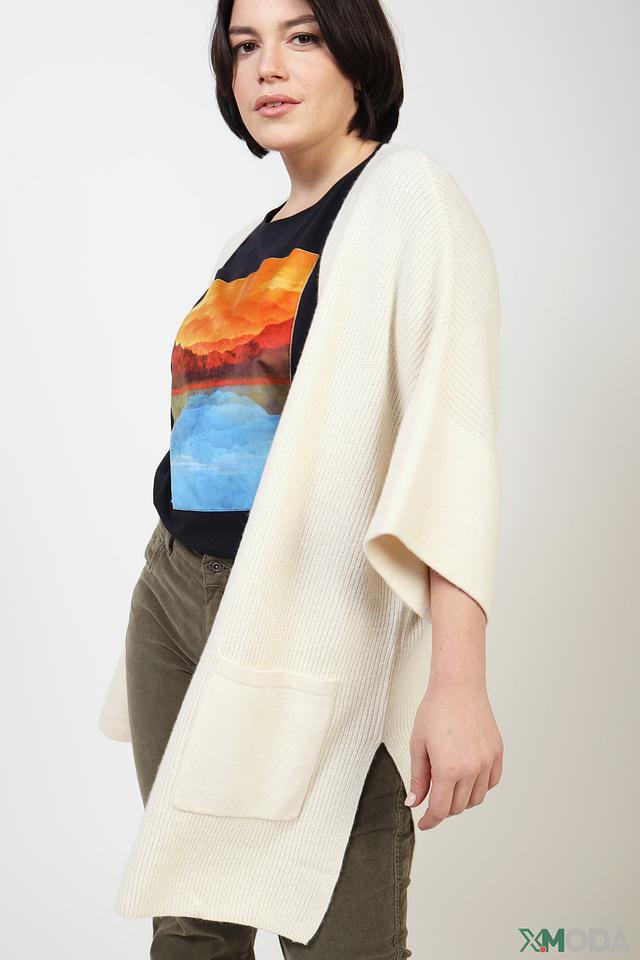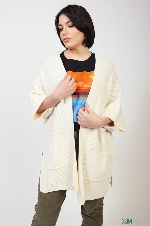 Кардиган имеет свободный крой, который обеспечивает комфорт в носке и позволяет создавать многослойные образы. Рукава 3/4 делают его универсальным для любого времени года. Наличие двух накладных карманов добавляет практичности.