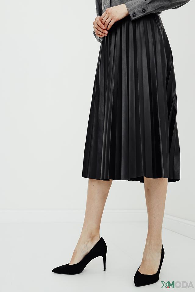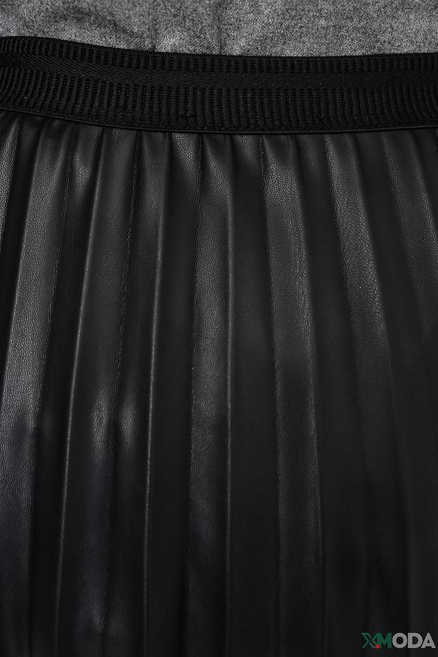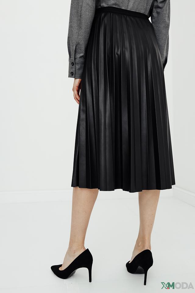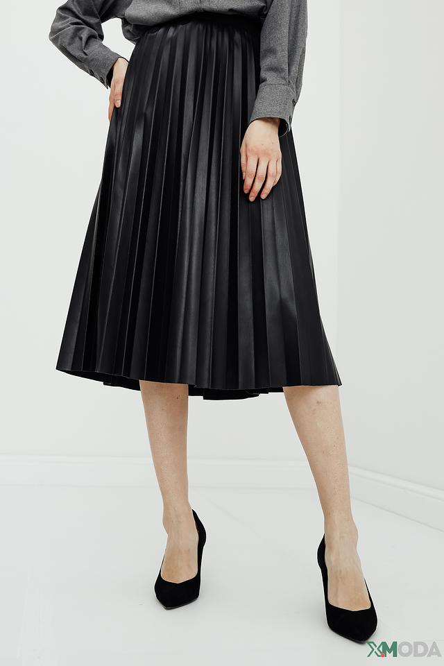 Юбка имеет классический чёрный цвет и плиссированную фактуру, которая придает ей изысканность и женственность. Плиссировка выполнена аккуратно и равномерно, создавая красивый силуэт.