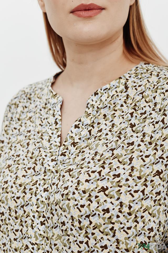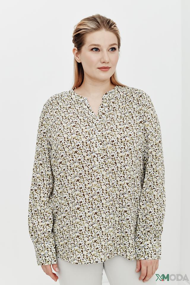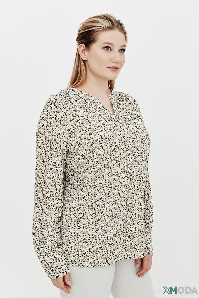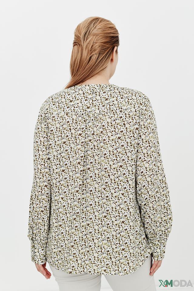 Блуза имеет свободный крой, который обеспечивает комфорт и свободу движений. V-образный вырез горловины и длинные рукава с манжетами придают ей элегантный вид. Привлекательный цветочный принт добавляет образу женственности и легкости.