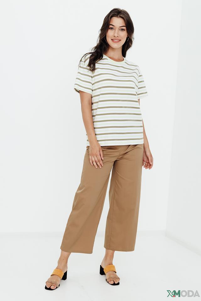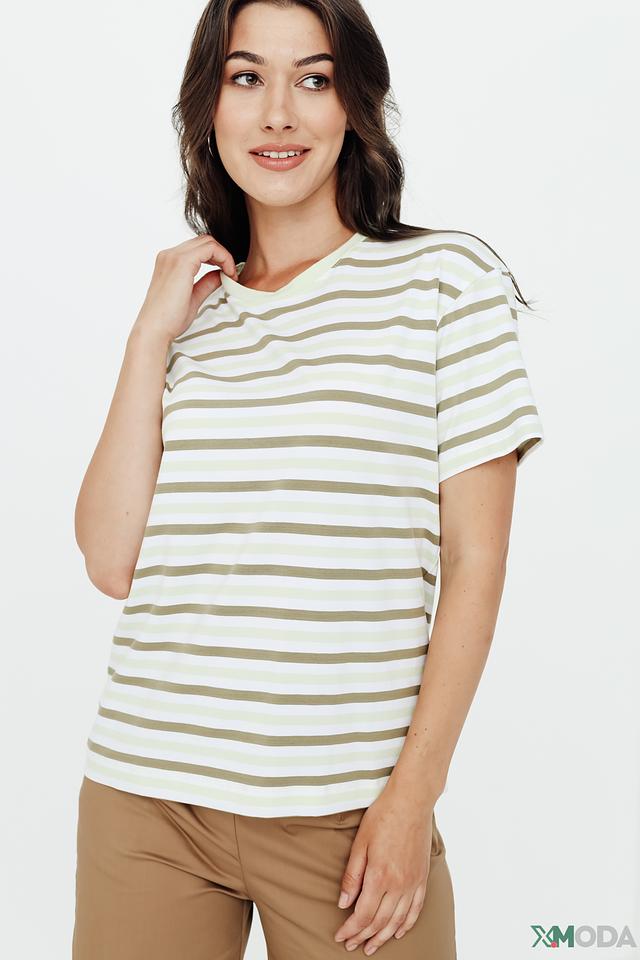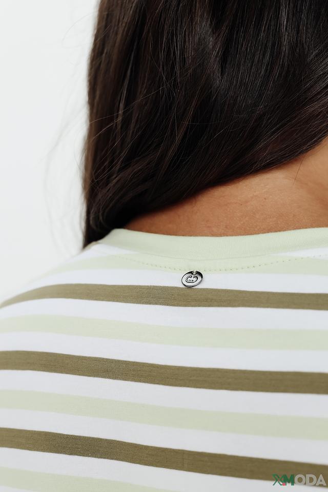 Эта футболка от Gerry Weber станет отличным дополнением к вашему образу. Она выполнена в классическом стиле с горизонтальной полоской, сочетающей в себе бежевый и оливковый цвета.