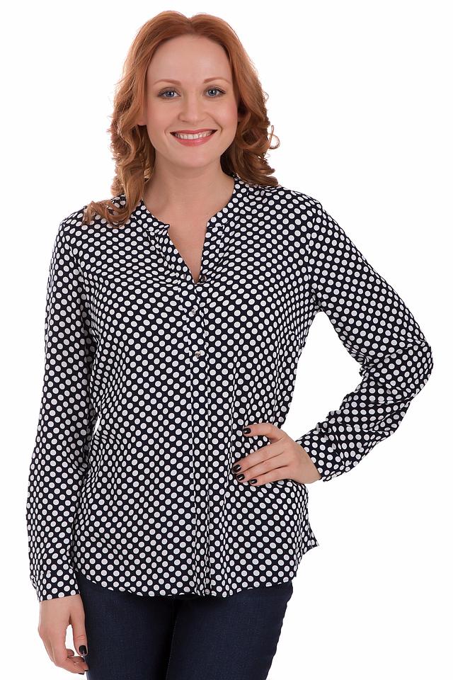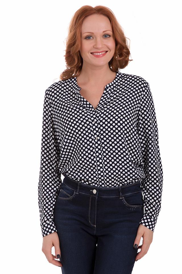 Женская блуза Gerry Weber черного цвета с белым горошком – стильное и универсальное решение для создания элегантного образа. Модель с длинными рукавами и V-образным вырезом, застегивается на пуговицы. Состав: вискоза 100%