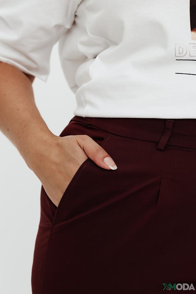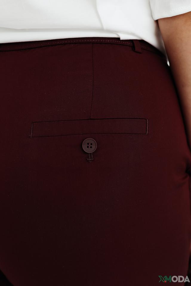 Брюки имеют прямой крой и длину 7/8, что делает их универсальными для различных образов. Высокая посадка подчеркивает талию и создает элегантный силуэт. Застежка на молнию и пуговицу обеспечивает надежную фиксацию.