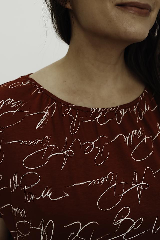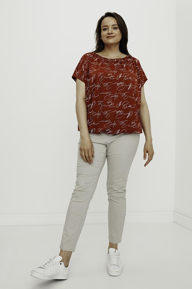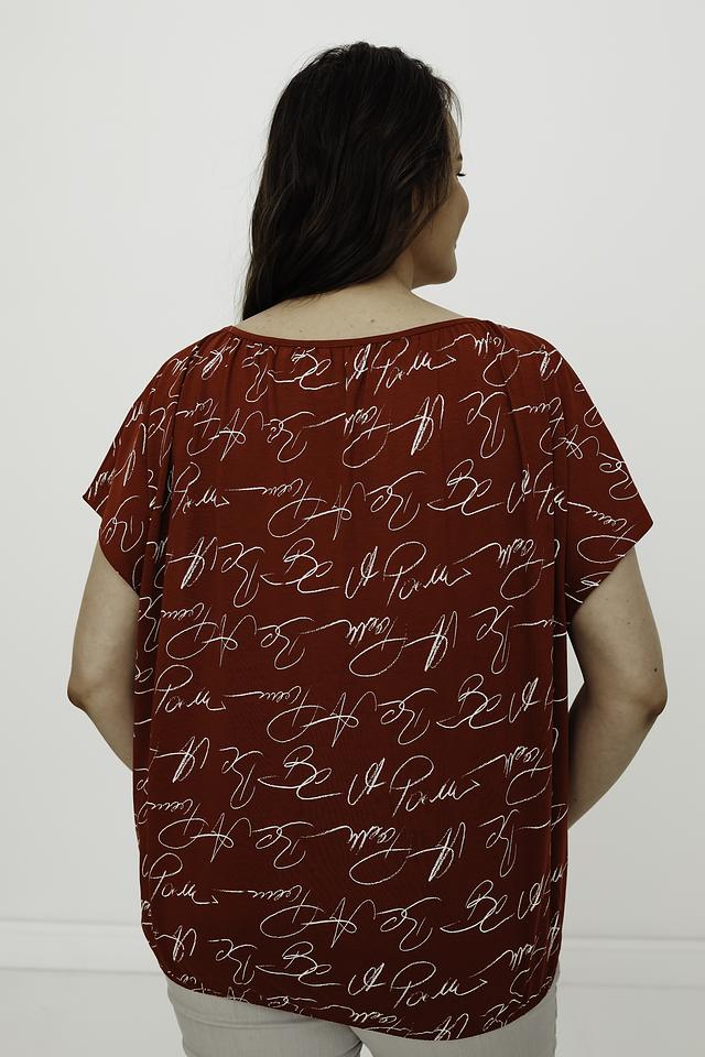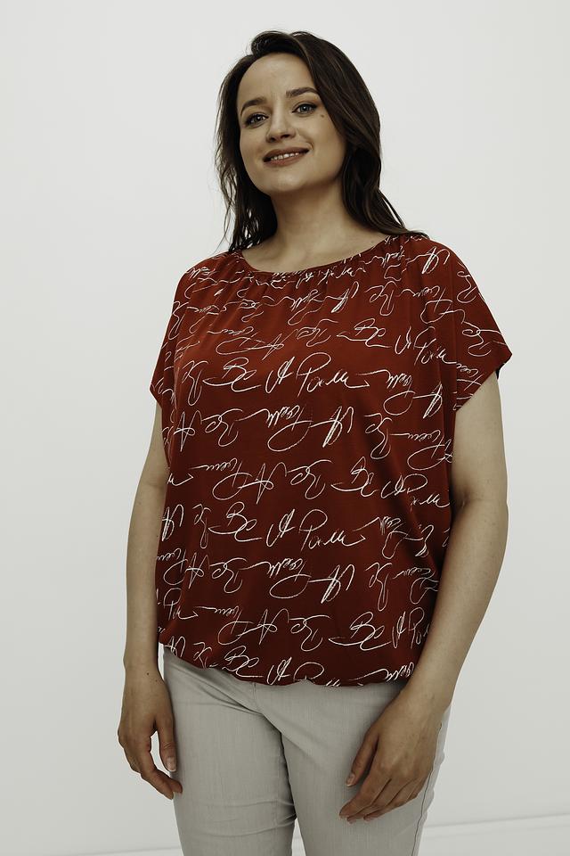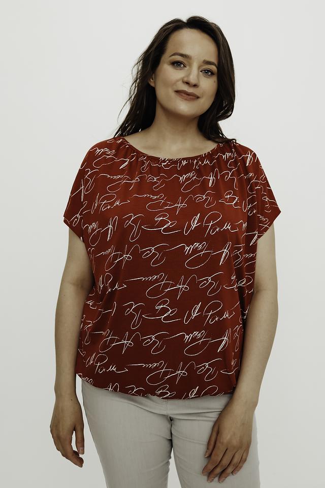 Эта стильная блуза от Gerry Weber выполнена в насыщенном красном цвете и украшена эффектным принтом, состоящим из повторяющихся надписей. Модель имеет свободный крой и короткие рукава, что делает ее идеальным выбором для теплой погоды.