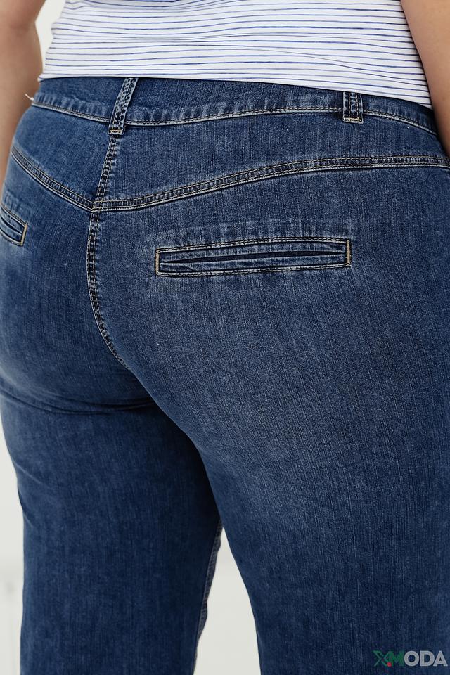 Классический синий цвет и слегка завышенная талия делают эту модель универсальной и подходящей для различных типов фигуры. Декоративные элементы в виде карманов и оригинальной отделки добавляют образу изысканности.