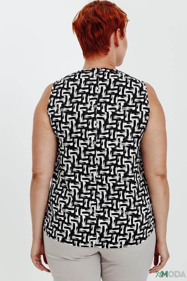 Топ Gerry Weber чёрно-белого цвета с геометрическим принтом – стильное и комфортное решение для летнего гардероба. Модель без рукавов и с округлым вырезом горловины, выполнена из мягкой вискозы. Состав: вискоза 100%