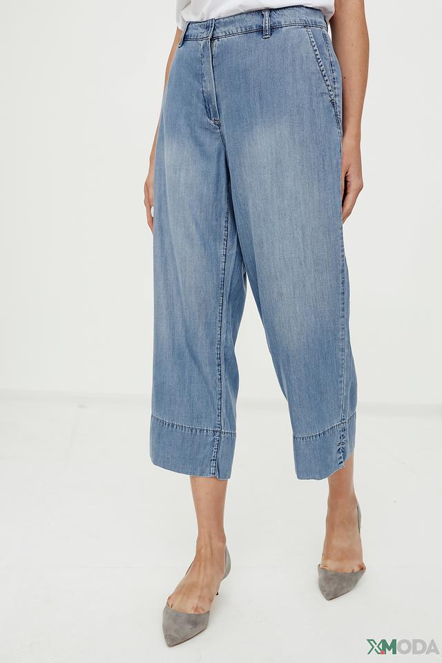 Капри Gerry Weber EDITION голубого цвета – стильная и комфортная модель с завышенной талией и широкими штанинами. Изготовлены из мягкой ткани с добавлением лиоцелла, вискозы и хлопка, обеспечивающих приятные ощущения при носке. Состав: лиоцел 66%, вискоза 18%, хлопок 16%