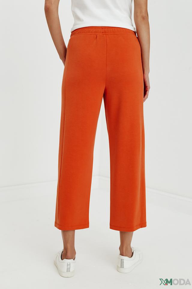 Брюки имеют прямой крой и длину 7/8, что делает их универсальными для разных типов фигуры. Удобный пояс на резинке обеспечивает комфортную посадку и свободу движений. Модель дополнена боковыми карманами.