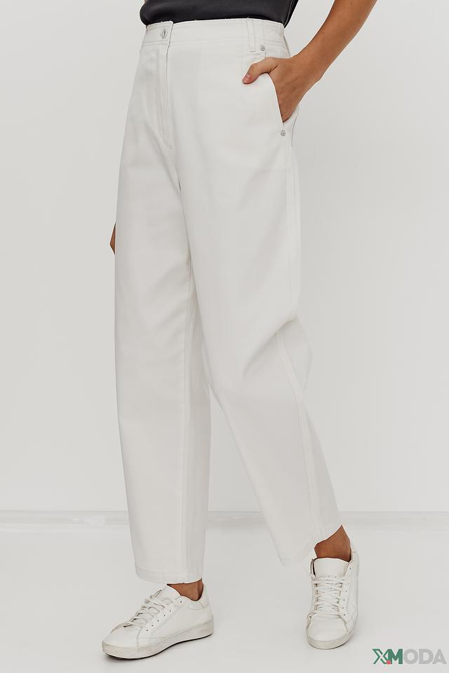 Брюки имеют прямой, слегка зауженный к низу крой, который визуально удлиняет ноги и придает силуэту элегантность. Высокая посадка подчеркивает талию и обеспечивает комфортную посадку. Модель дополнена функциональными карманами.