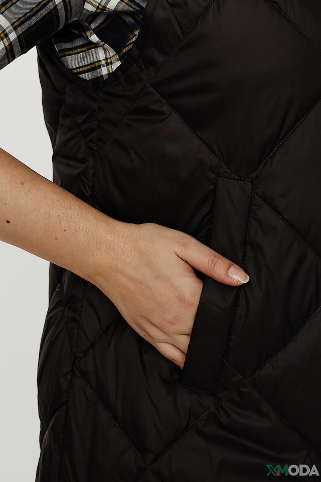Жилет имеет удлиненный крой, который обеспечивает дополнительное тепло и комфорт. Стеганая текстура придает ему современный вид, а удобные боковые карманы позволяют хранить необходимые мелочи.
