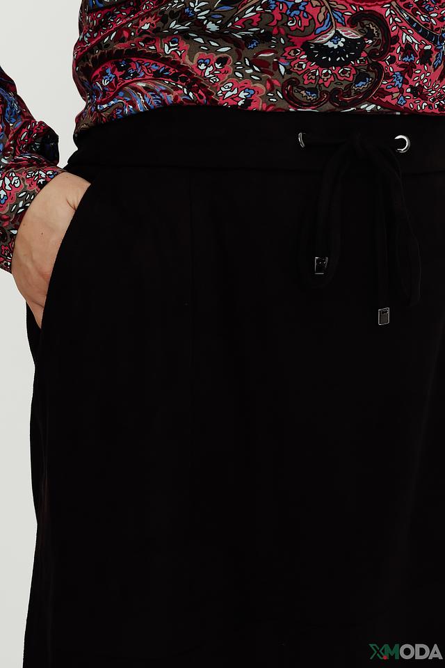 Чёрная юбка Gerry Weber длиной миди выполнена из плотной ткани с добавлением эластана. Модель дополнена поясом с кулиской, что обеспечивает комфортную посадку и возможность регулировки. Состав: полиэстер 92%, эластан 8%