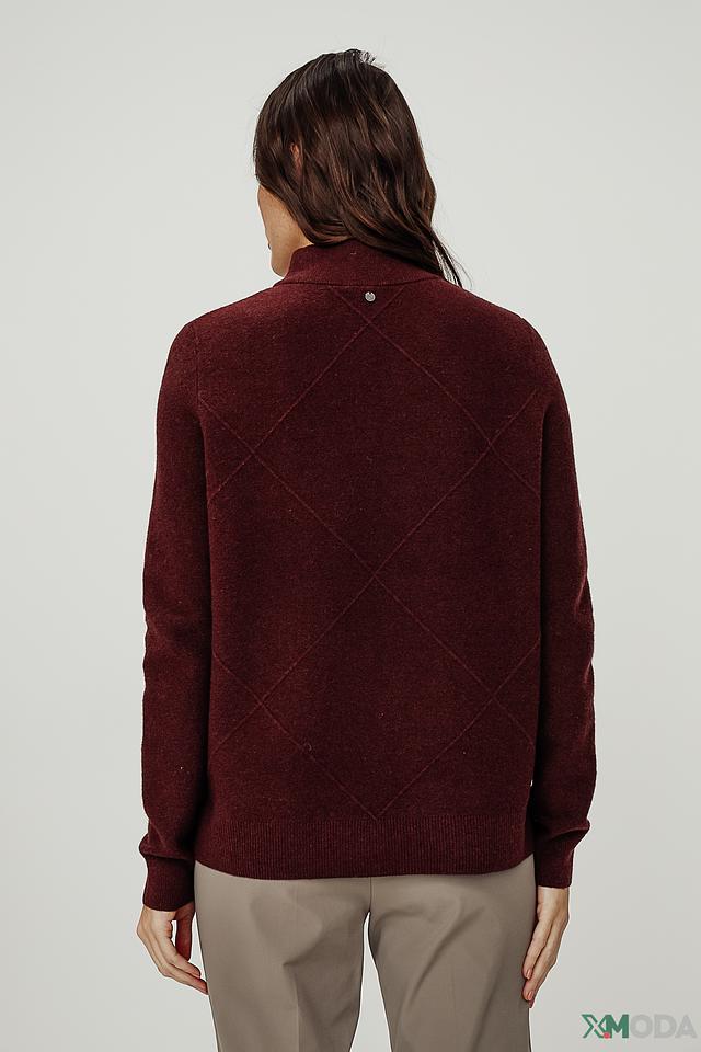 Женский пуловер Gerry Weber бордового цвета с геометрическим узором из ромбов. Модель выполнена из мягкой пряжи с добавлением хлопка, полиамида и шерсти, что обеспечивает комфорт и тепло. Идеально подходит для создания стильных повседневных образов. Состав: хлопок 55%, полиамид 26%, полиакрил 10%, шерсть 5%, эластан 4%
