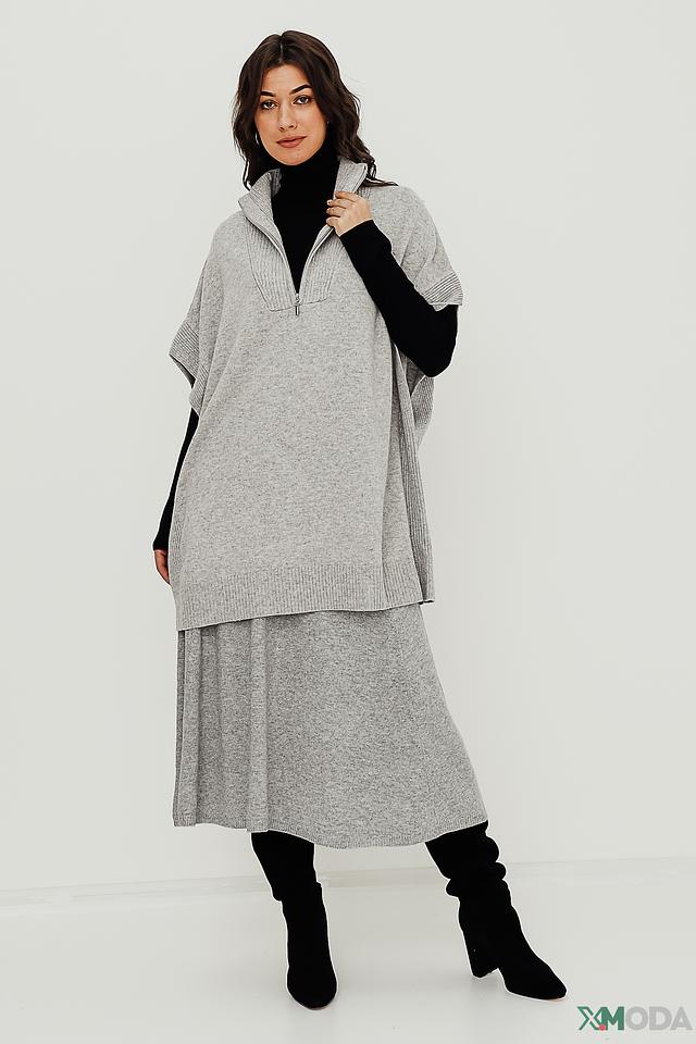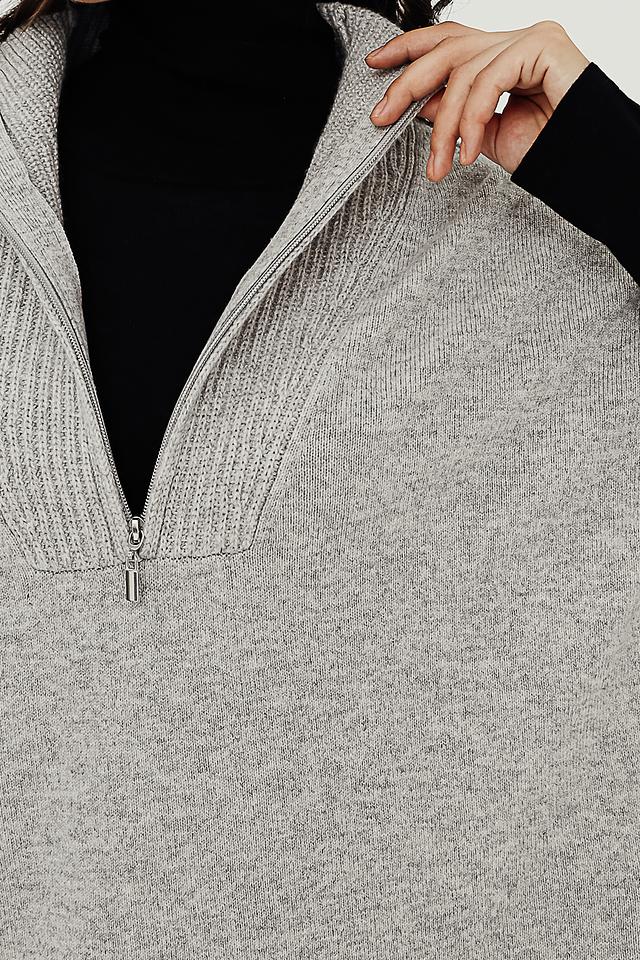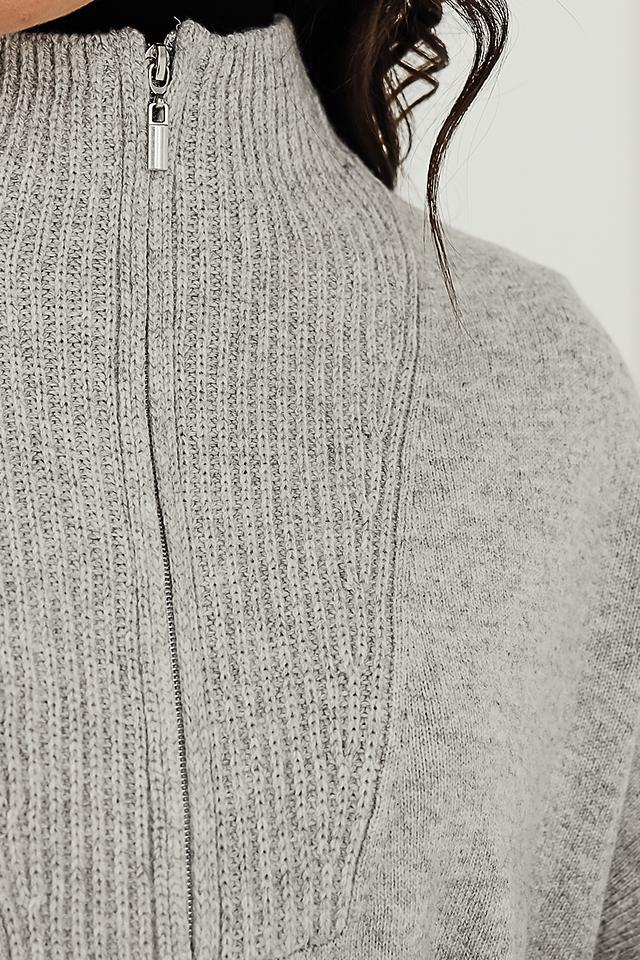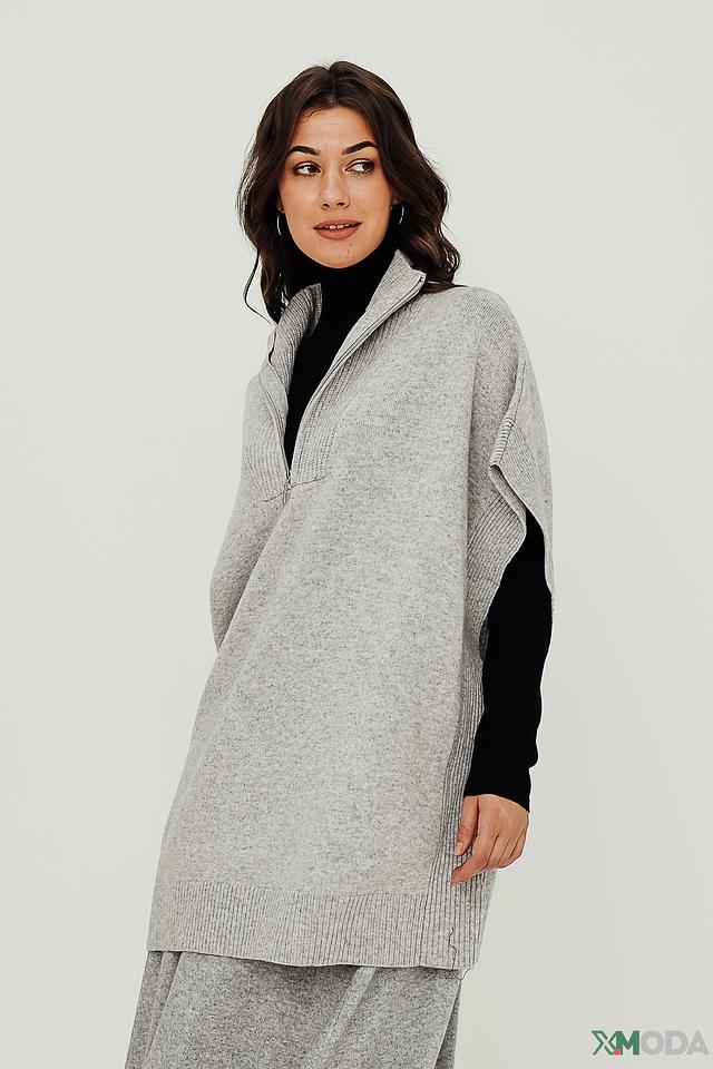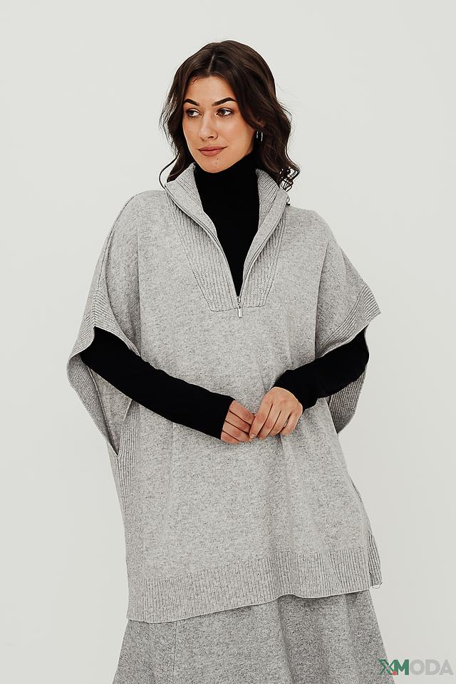 Пуловер имеет V-образный вырез, который оформлен короткой молнией. Текстура вязки придает изделию объем и фактурность. Состав ткани включает 50% шерсть, 30% полиамид и 20% модал, что обеспечивает мягкость, тепло и комфорт в носке.