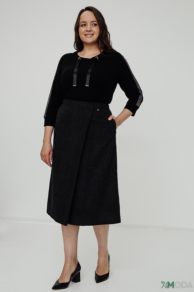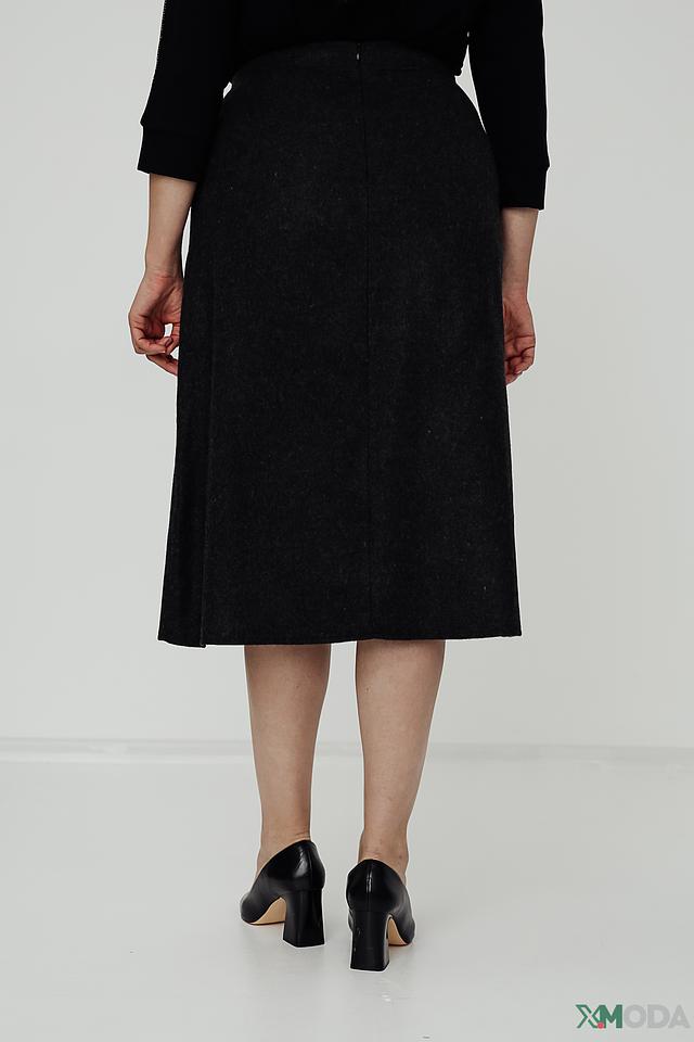 Юбка имеет длину миди и асимметричный крой, который визуально стройнит фигуру. Декоративная складка на талии добавляет изысканности и подчеркивает талию. Ткань юбки представляет собой смесь полиэстера, полиакрила, шерсти и других волокон, что обеспечивает комфорт в носке и практичность в уходе.